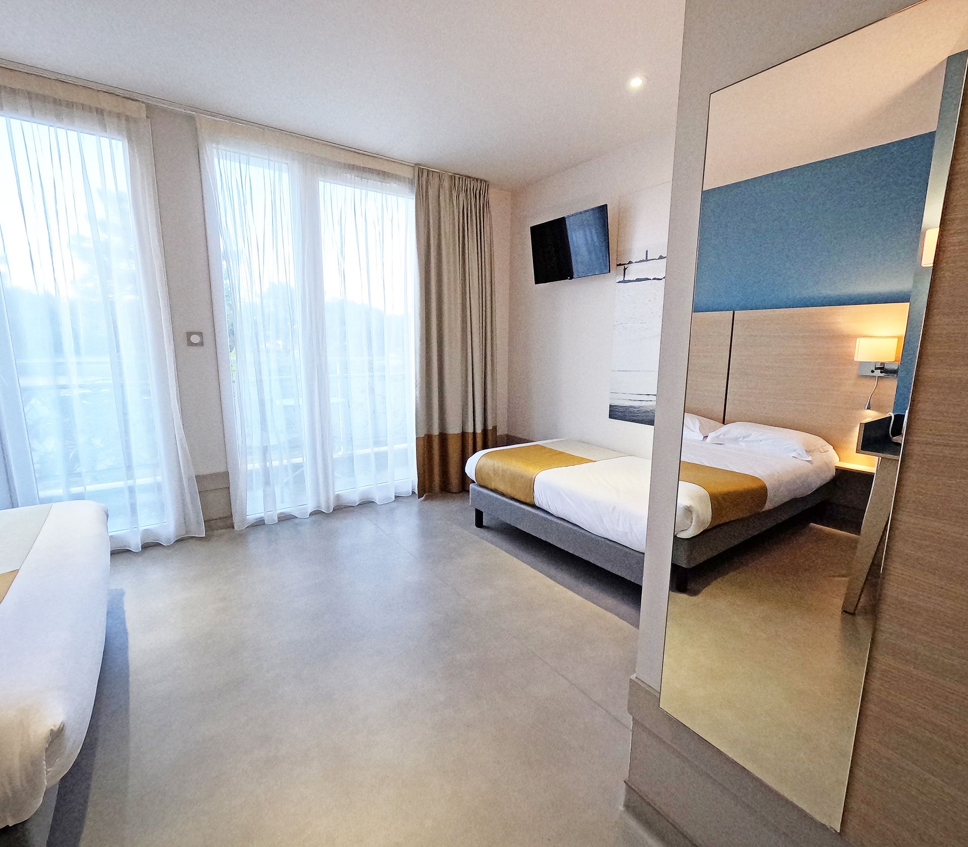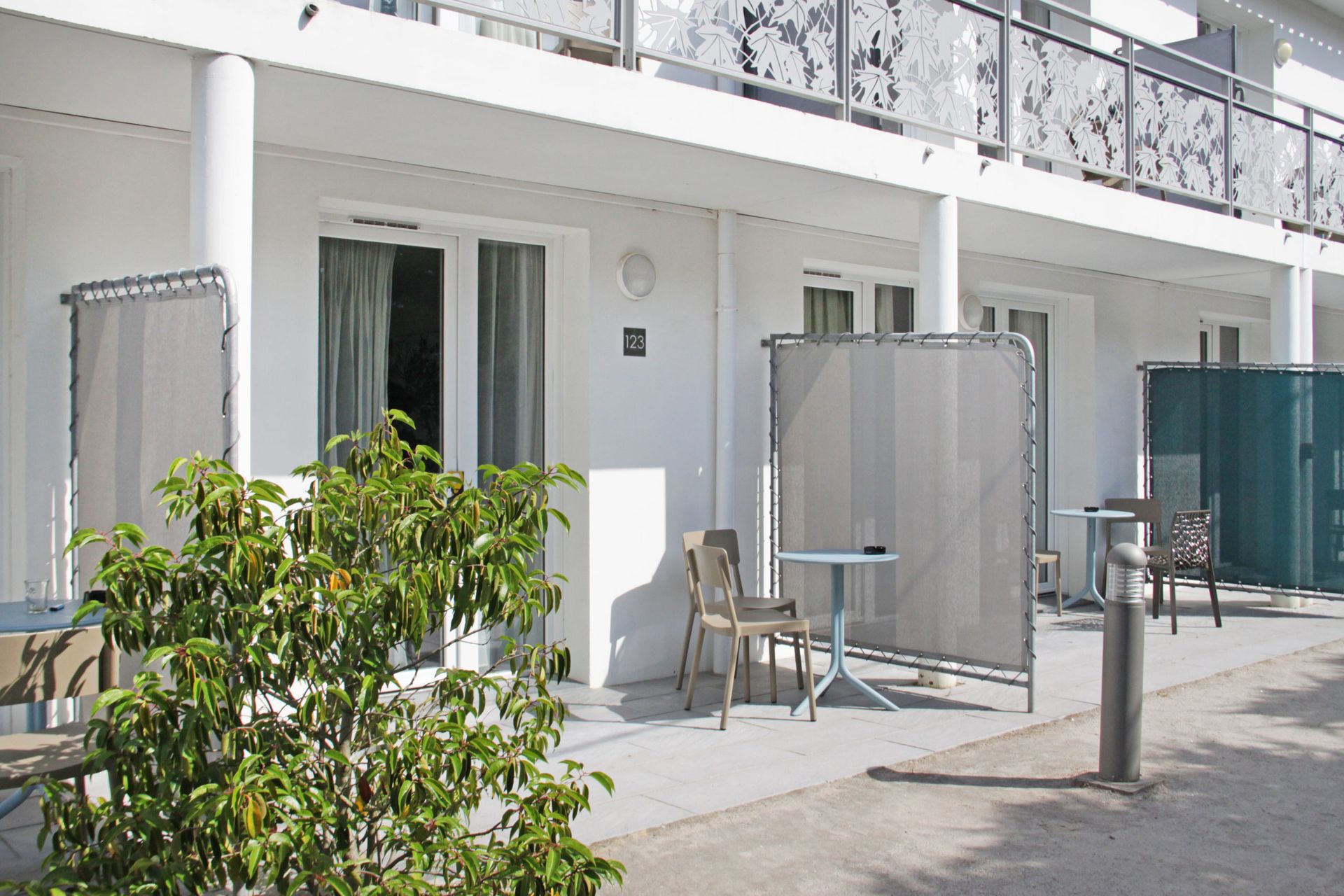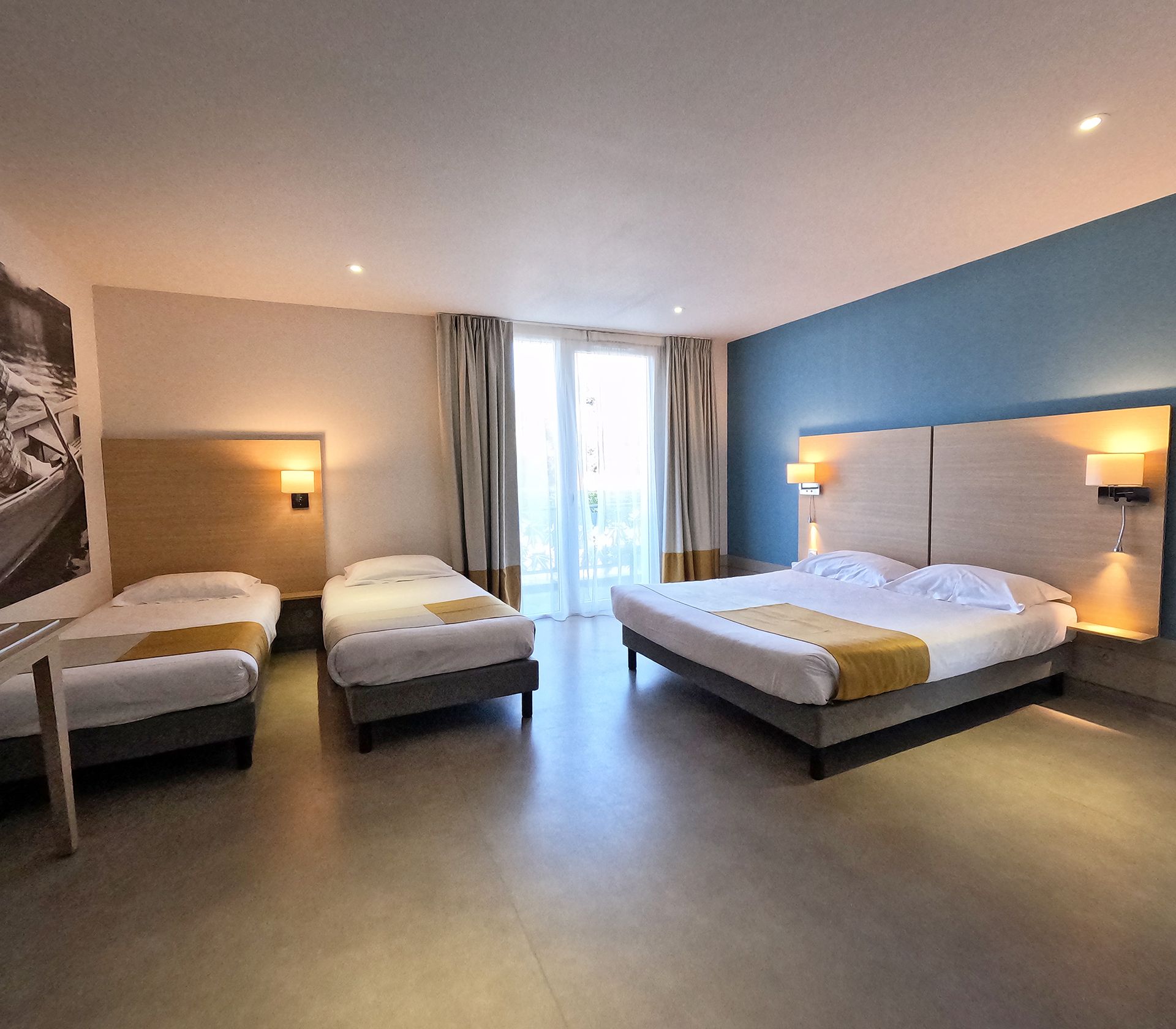 Notre intervention avait pour objectif d’optimiser la gestion de la lumière naturelle, d’améliorer le confort des occupants et de renforcer l’atmosphère chaleureuse des espaces. Les tissus et finitions ont été sélectionnés pour allier esthétique, durabilité et usage intensif en environnement hôtelier.